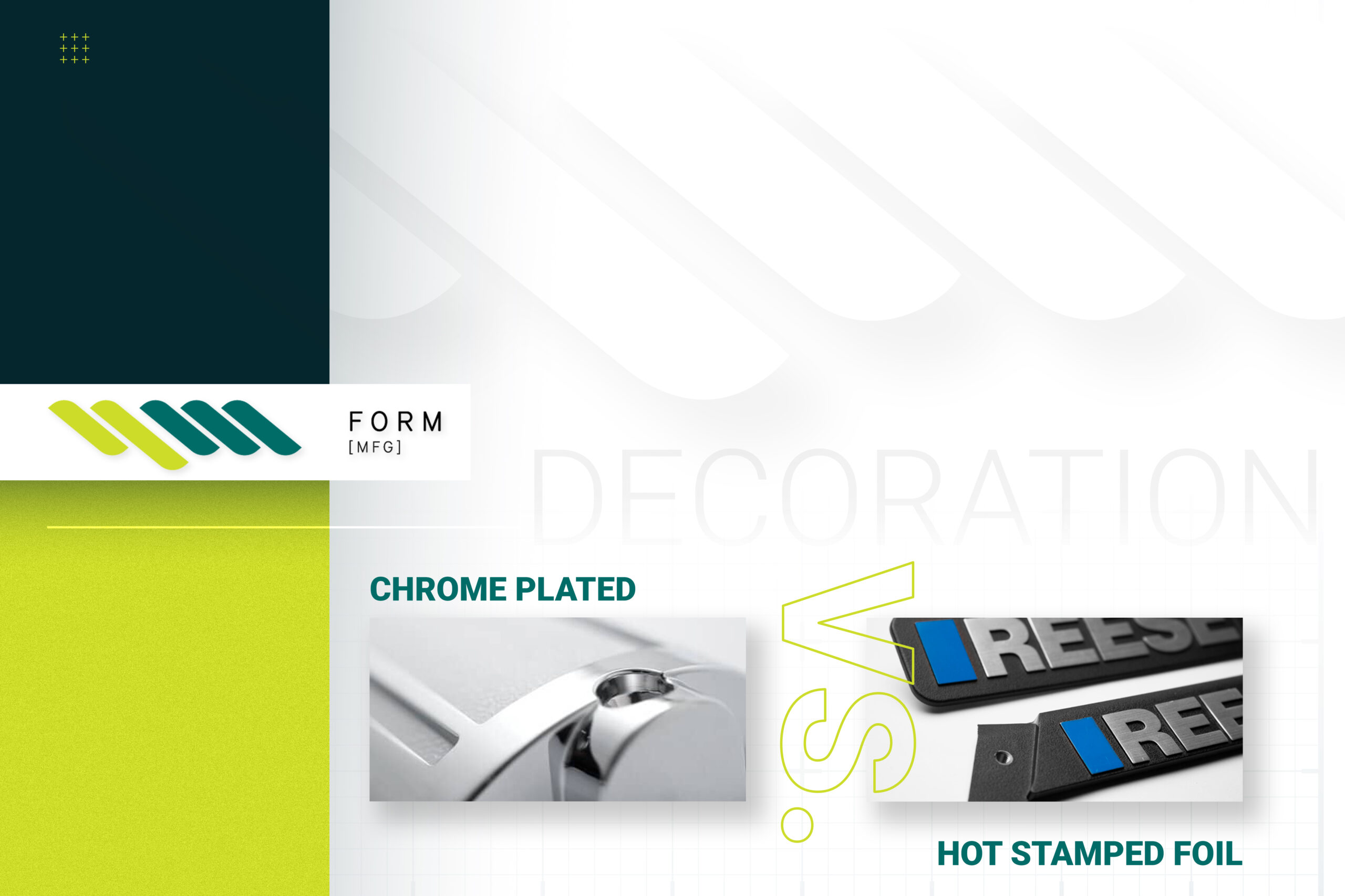 When you understand the differences between chrome plating and hot stamped foil decoration, you can make a better decision when choosing the best finishing options for you and your product. For optimal results, it’s always wise to rely on the skills and expertise of professionals like Form Manufacturing who have over 20 years of experience in the industry. Reach out to us with your questions, for a quote, or to discuss your unique decorative finish needs.